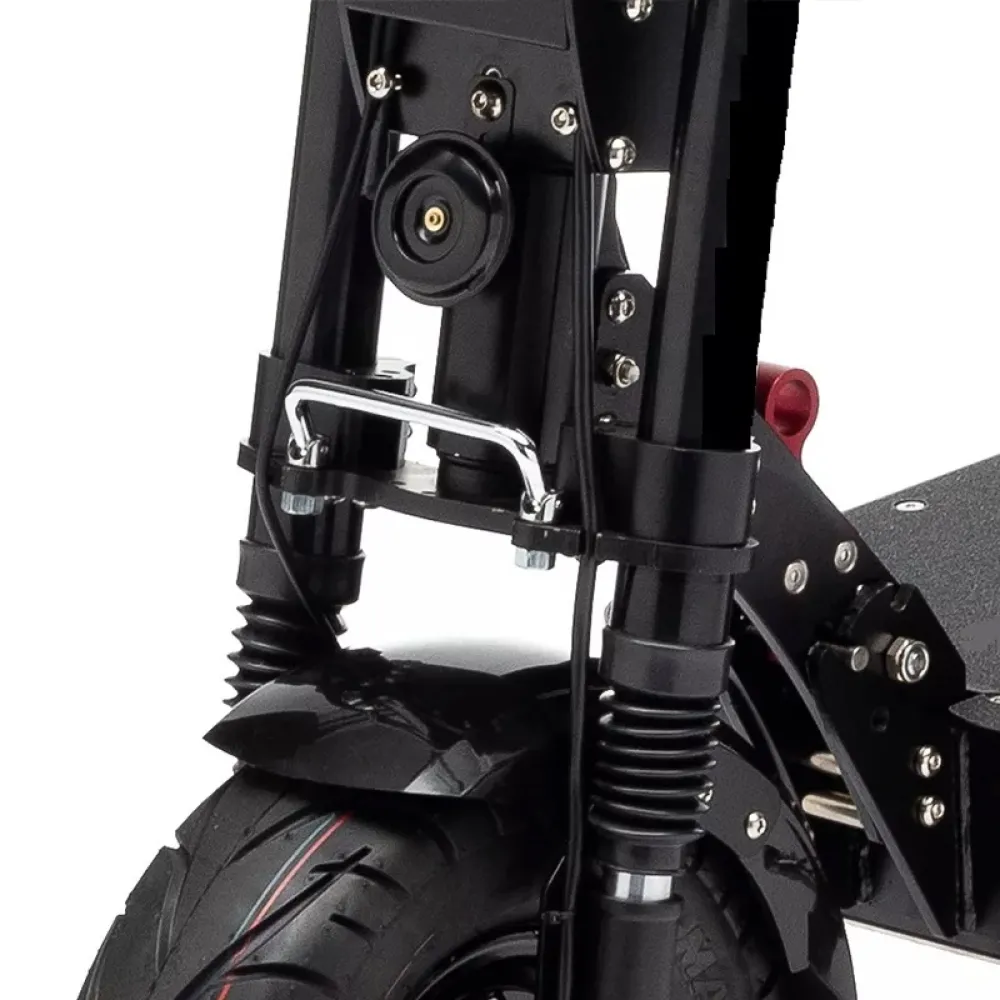 Комфорт и удобство пользования обеспечены широкой нескользящей платформой и удобной рулевой стойкой и прорезиненными грипсами. Качественная тормозная система и устойчивые накатистые колеса – дополнительные элементы безопасности эксплуатации техники. С точки зрения профи электросамокат создан для лидеров, смельчаков, целеустремленных личностей, не представляющих жизни без скорости и прилива адреналина. Брутальный дизайн подтверждает указанные факты.