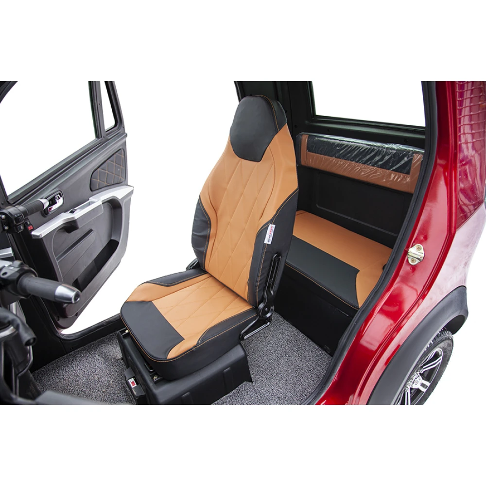 Максимальная скорость 20-25 км/час легко достигается благодаря мощности двигателя 1000 Вт. Улучшенная тормозная система позволяет быстро остановиться в экстренных ситуациях. Модель компактна, пользователю не стоит беспокоиться о поиске места для парковки. Улучшенные показатели грузоподъемности техники позволяют доставлять грузы массой 200 кг. Широкие колеса с мощными протекторами придают транспортному средству повышенную проходимость. Яркие светодиодные фары хорошо освещают дорогу в темное время суток.