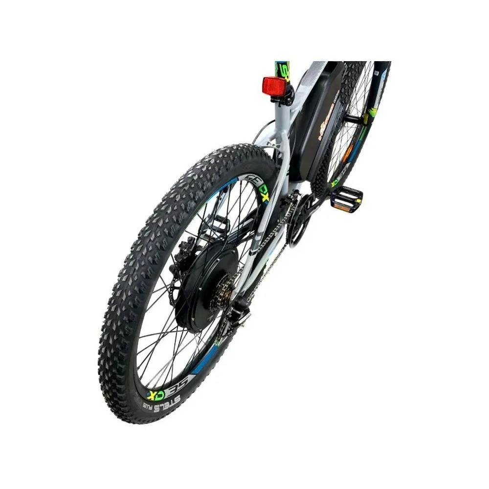 Модель представлена целостной рамой, предназначена для езды по пересеченной местности, изготовлена с учетом пожеланий райдеров. При мощности движка в 1000 Вт максимальные скоростные характеристики могут достигать 50 км/час. На средних скоростях тс способно преодолевать до 70 км пути. Параметры достаточно серьезные. Многие сравнивают электровелосипед с машиной. По этим причинам производители требуют покупки дополнительных аксессуаров защиты для райдера.